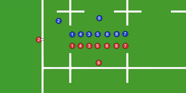 B –Supports J/A either for offload or winning ruck ball OR can be passed the ball behind J&A